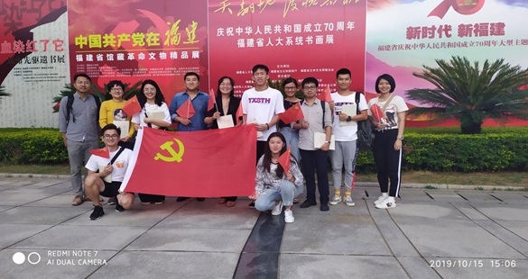 为庆祝中华人民共和国成立70周年,2019年10月15日beat365在线唯一官网学生第一、第二党支部在福建博物馆开展参观“新时代新福建——福建省庆祝中华人民共和国成立70周年大型主题展”党日活动,主题展呈现出一幅新时代新福建建设新征程中持续奋斗、开拓前行的壮美画卷,党员们为中华人民共和国成立70年来福建经济社会发展的巨大成就所震撼,纷纷流连忘返。