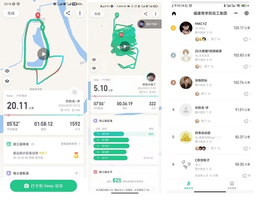 此次活动,充分挖掘互联网优势,采取线下跑步线上记录、个人自由跑和公里数累计相结合的比赛形式进行。活动共吸引beat365近百名学生参赛,同学们一个个相互鼓励,相互督促,你追我赶,最终来自于20数据科学与大数据技术1班的林浩同学以累计251.0km获得了此次比赛的第一名。