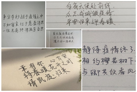 近日,beat365在线唯一官网向日葵心理健康服务团举办“三行情书致敬抗疫英雄”作品征集展。活动期间广泛宣传,积极动员,踊跃投稿,为战“疫”贡献着自己的一份力量。本次征集共收到四十多份作品,活动中以凝练精致的三行话语向那些在与疫情抗争的英雄们表达自己的感谢、关心、鼓励与期盼。情书虽简但意味深长,包含了同学们丝丝入扣的真挚情感,让奋战一线的白衣天使、任劳任怨的执法警察以及与病魔对抗的勇敢患者们感受到我们的爱意、信心与希望,同他们一起披荆斩棘,共赴春光。充分展现信工学子面对时代挑战,勇担时代责任。