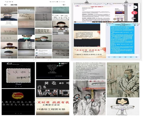 各班团支部围绕防疫与为武汉加油、为中国加油两方面开展了作品征集与展示,征集到的作品有“教家人正确的洗手方法”、“教家人正确佩戴口罩”、“为家人做一道菜”、“为社区测体会”等特色活动。凝心聚力,同心“战疫”。