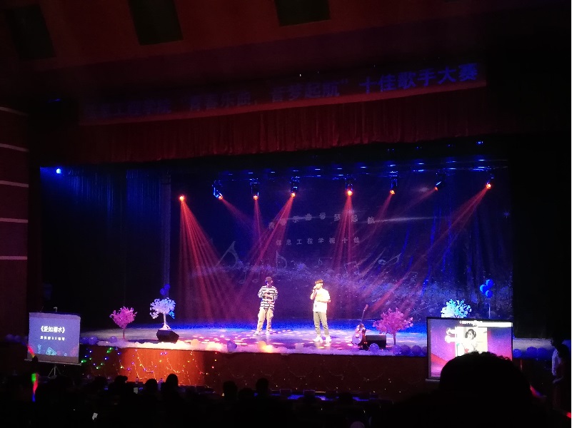 经过层层选拔,12名成功晋级的选手分为了六组,两两PK站上了决赛的舞台。比赛的场面异常火爆,选手们怀揣着激情与梦想,用他们美妙的歌声感染着观众们的心灵。由王炜文、邵一森同学带来的一首《空白格》拉开了比赛的序幕。优美的旋律,迷人的嗓音让现场观众仿佛置身于寂静的夜晚,感受着那份宁静。经过激烈角逐之后,王炜文同学的演唱获得季军,吴方旭同学获得亚军,郑林哲同学获得了本次大赛的冠军。