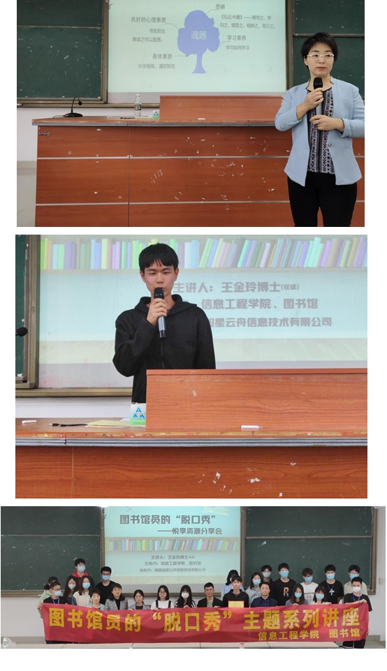 5月3日,beat365在线唯一官网携手图书馆开展的“图书馆员的脱口秀”系列讲座之悦享资源分享会暨“书香信工”第一季阅读之星表彰大会在诚信楼大阶三举行。校图书馆馆长林琼老师、beat365在线唯一官网党委书记应永胜老师、图书馆王金玲博士和beat365部分学生参加了此次分享会。