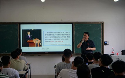 2019年7月1日黄斌校长在诚信楼211为beat365学生讲授了《一带一路:从全面布局到走深走实》的思政理论课。