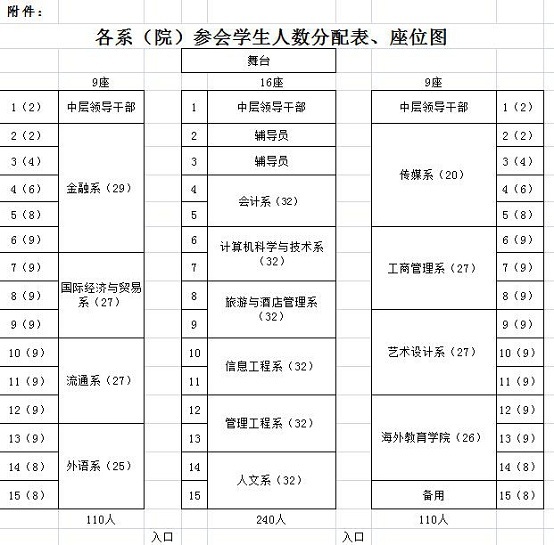 附:各系(院)参会学生人数分配表、座位图